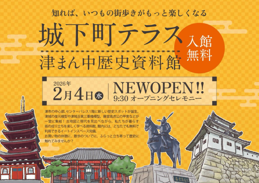津センターパレスビル1階に、2月4日(水)から「城下町テラス ー津まん中歴史資料館ー」が開設されます!!
