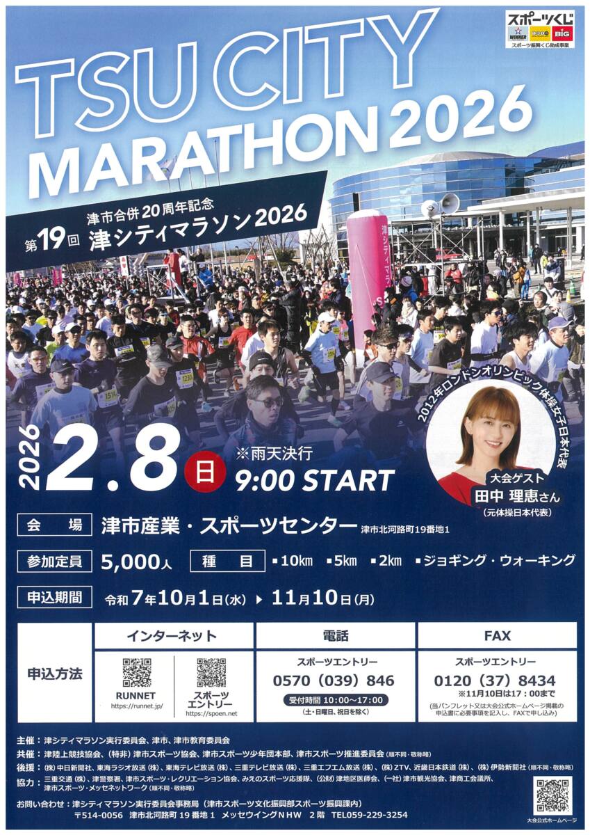 第19回津シティマラソン2026 津シティマラソンは、郊外にある津市産業・スポーツセンターをスタートして、津市の中心市街地にある三重県庁、津市役所、津城跡などを巡るコース設定がされています(10㎞コース※詳細は下コース図 […]