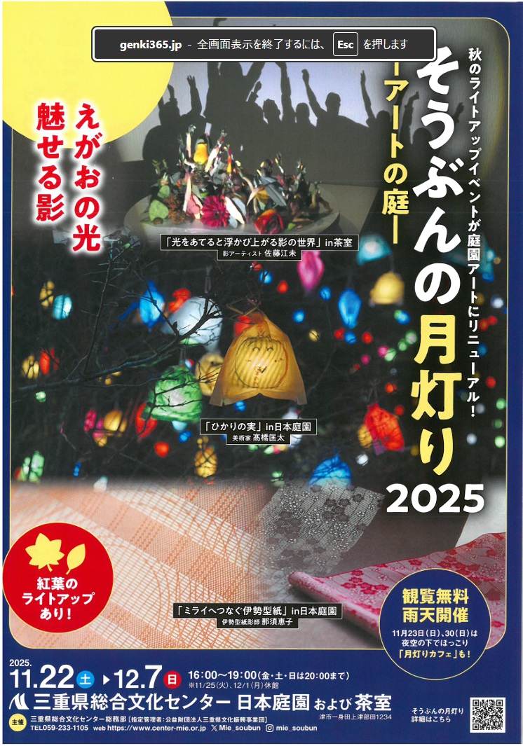 えがおの光 魅せる影 そうぶんのライトアップイベントが変わります。これまでの竹あかりから、今年は新しい屋外アートイベントにリニューアルされるそうです!今年のテーマは「えがおの光 魅せる影」。フレンテみえ裏にある日本庭園を […]