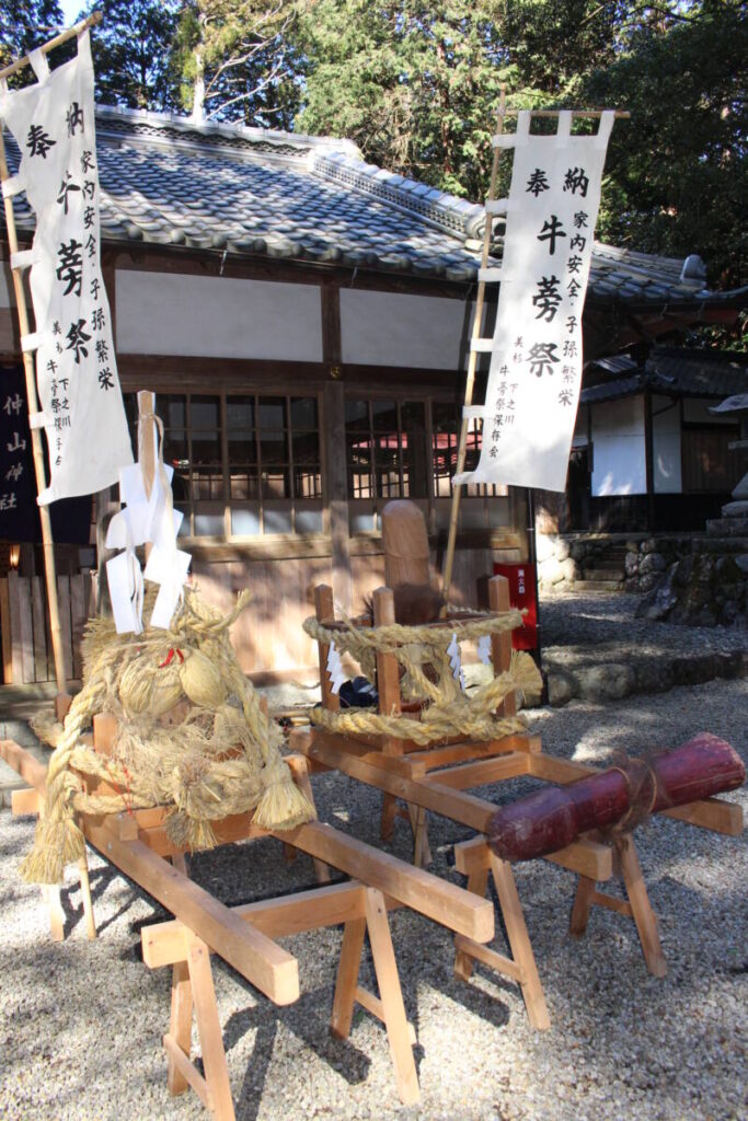 牛蒡祭は、1975年(昭和50年)3月27日に三重県指定無形民俗文化財に指定されており、古式どおりに御弓や庖丁を使った行事が行われますので、ぜひご覧ください。