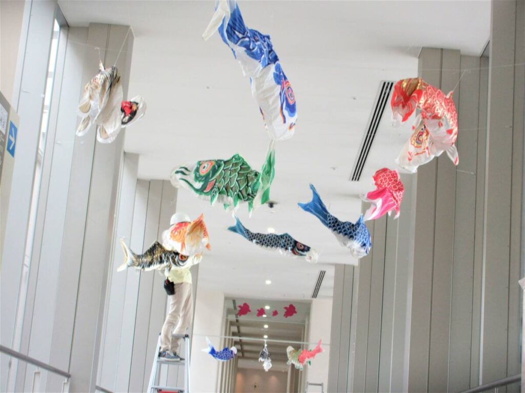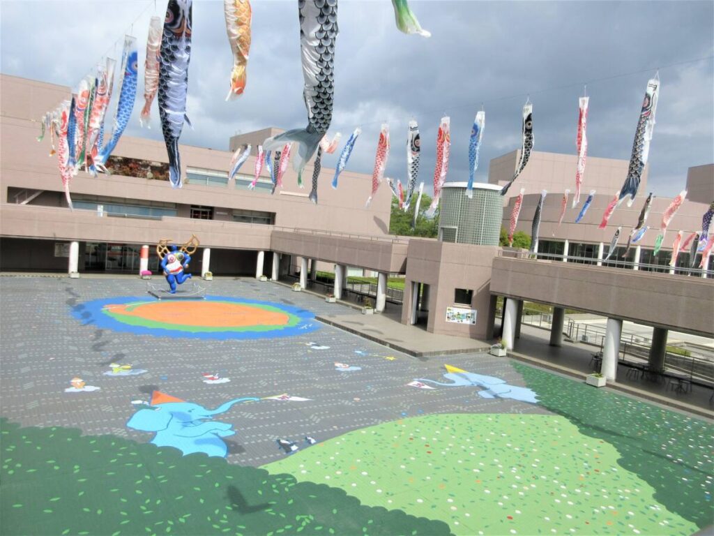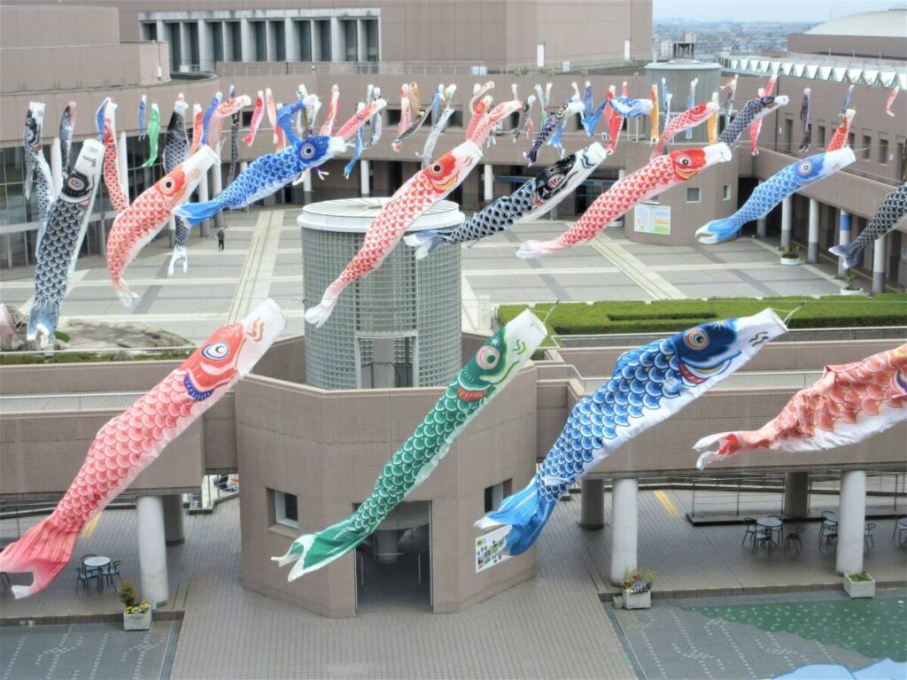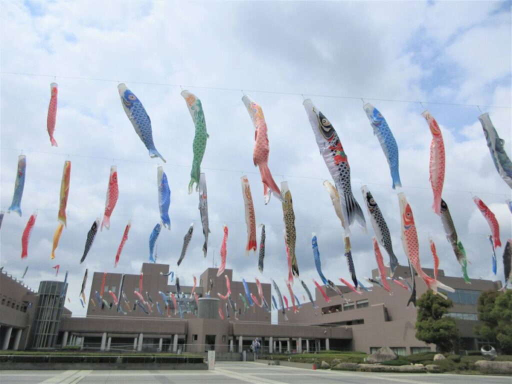 三重県総合文化センターで毎年たくさんのこいのぼりが設置され、祝祭広場と知識の広場ににぎわいます。これは一般の方らの提供品で、色とりどりのこいのぼりが一斉に初夏の青空で泳いでおります。