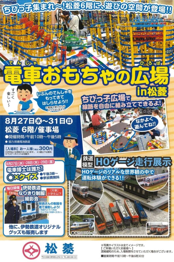 内容:線路を自由に組み立てて走らせることができるよ!鉄道模型HOゲージ走行展示があるよ!伊勢鉄道なりきり制服撮影会があるよ!