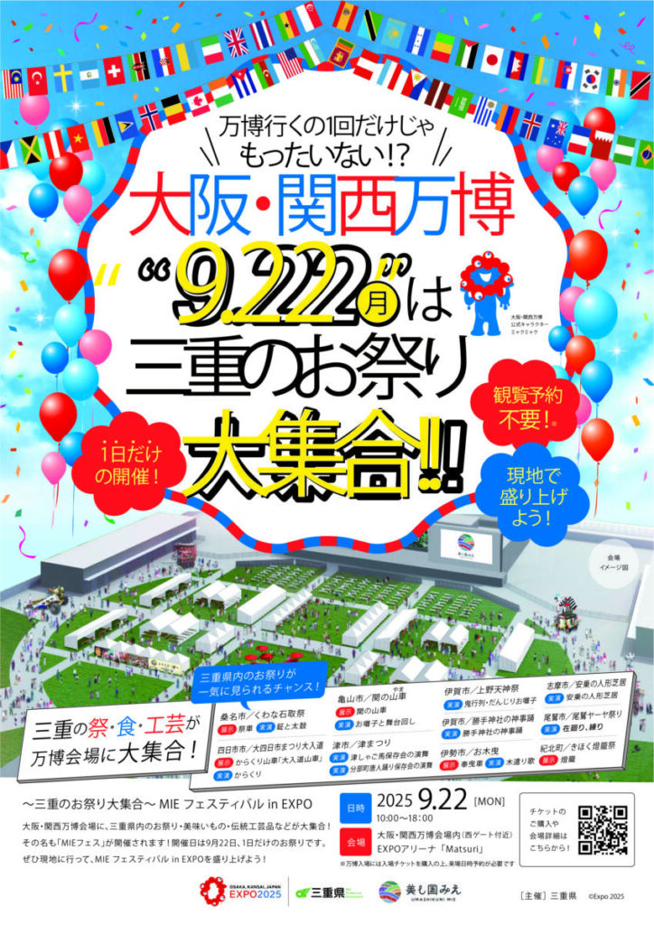 くわな石取祭(桑名市)、大四日市祭大入道(四日市市)、関の山車(亀山市)、 津まつり(津市)、 お木曳(伊勢市)、安乗の人形芝居(志摩市)、上野天神祭、勝手神社の神事踊(伊賀市)、尾鷲ヤーヤ祭り(尾鷲市)、きほく燈籠祭(紀北町)