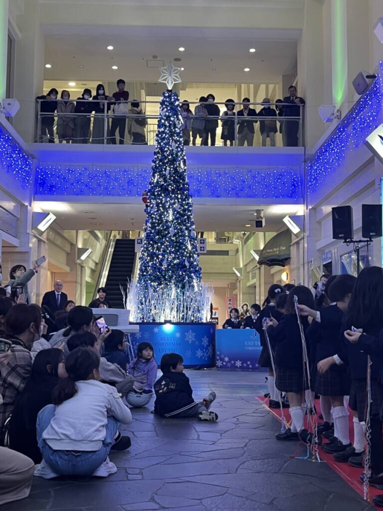2025クリスマスツリー点灯式は、大川幼稚園の園児とヴァイオリニスト 内山優子さん・ピアニスト 兼重優子さんにお越しいただき今年も盛り上げていただきました♪