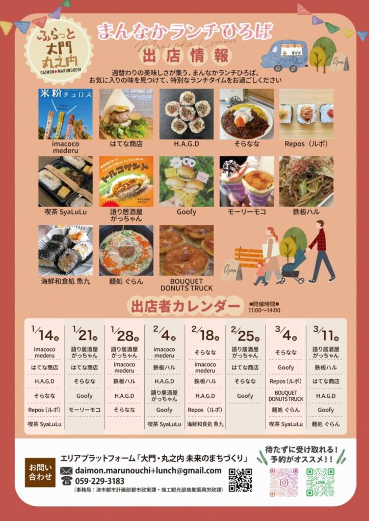 大好評のまんなかランチひろばが1月から3月まで開催されることに決まりました。