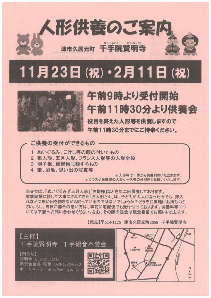 津市の千手院賢明寺では、恒例の人形供養が行われます。