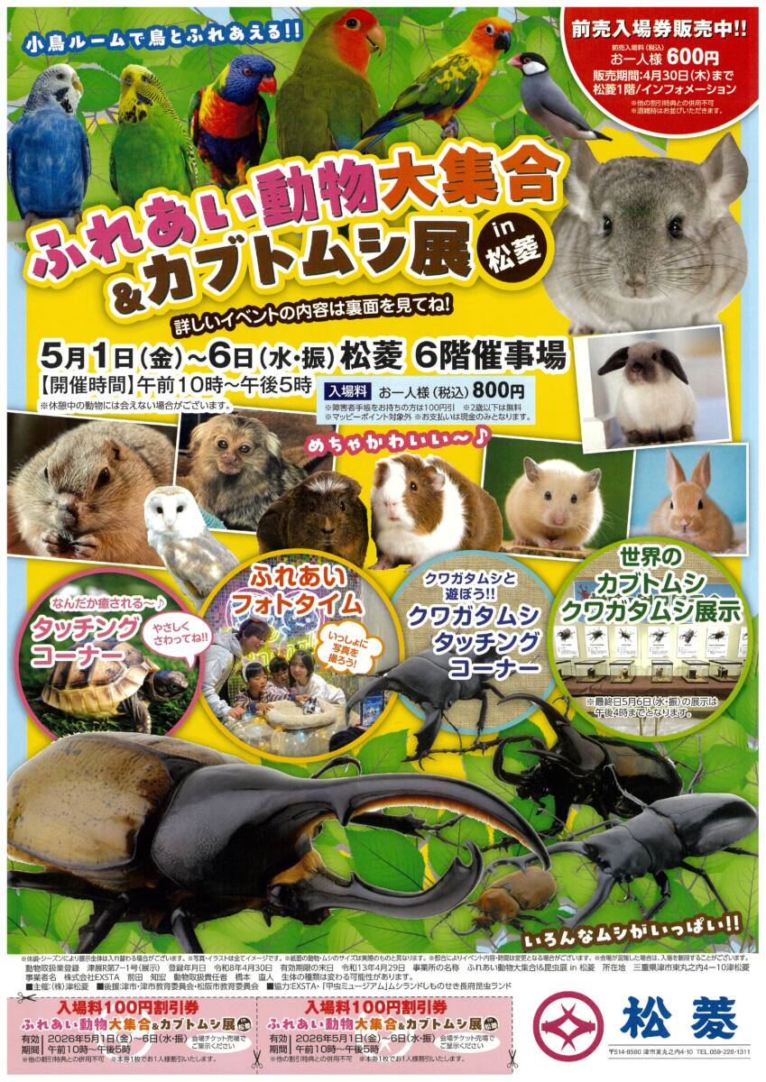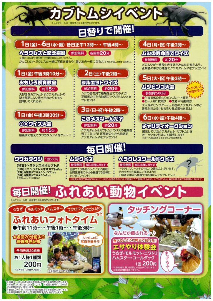 ふれあい動物大集合&カブトムシ展in松菱