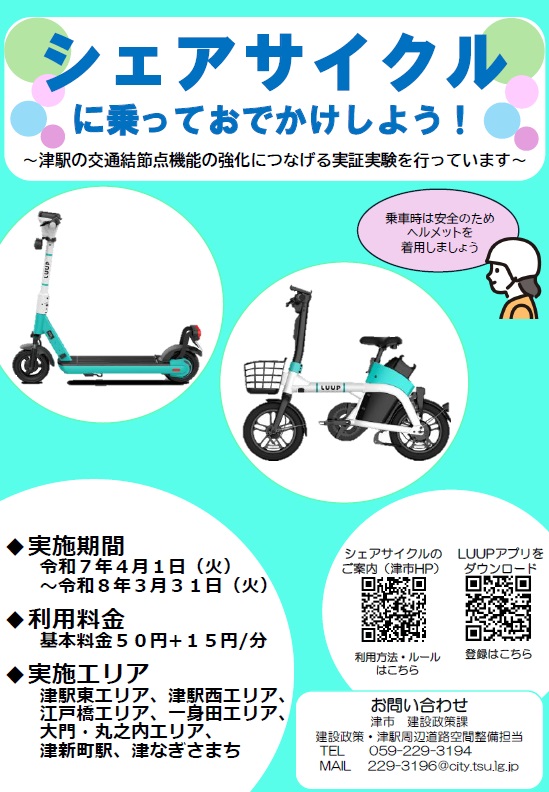 令和6年8月26日(月)から、スタートした津市のシェアサイクルの実施期間が延長されました!