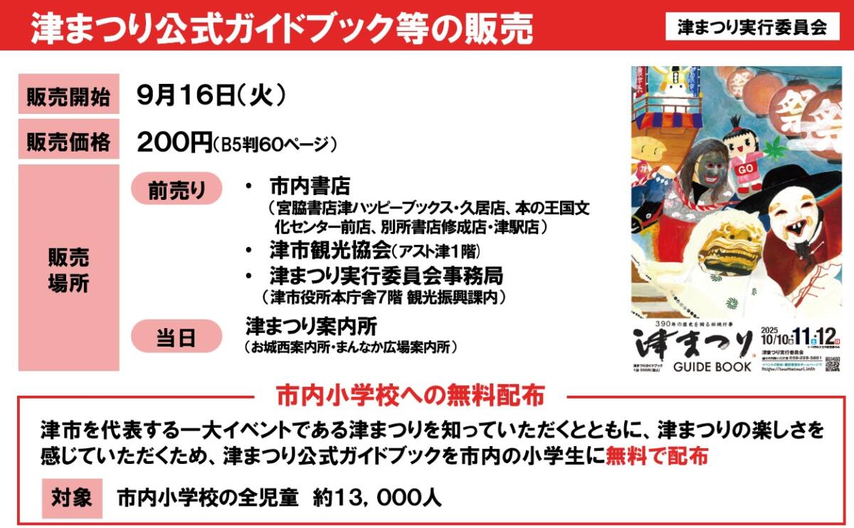 津まつり公式ガイドブックは、9月16日(火)から1冊200円で販売を開始します。